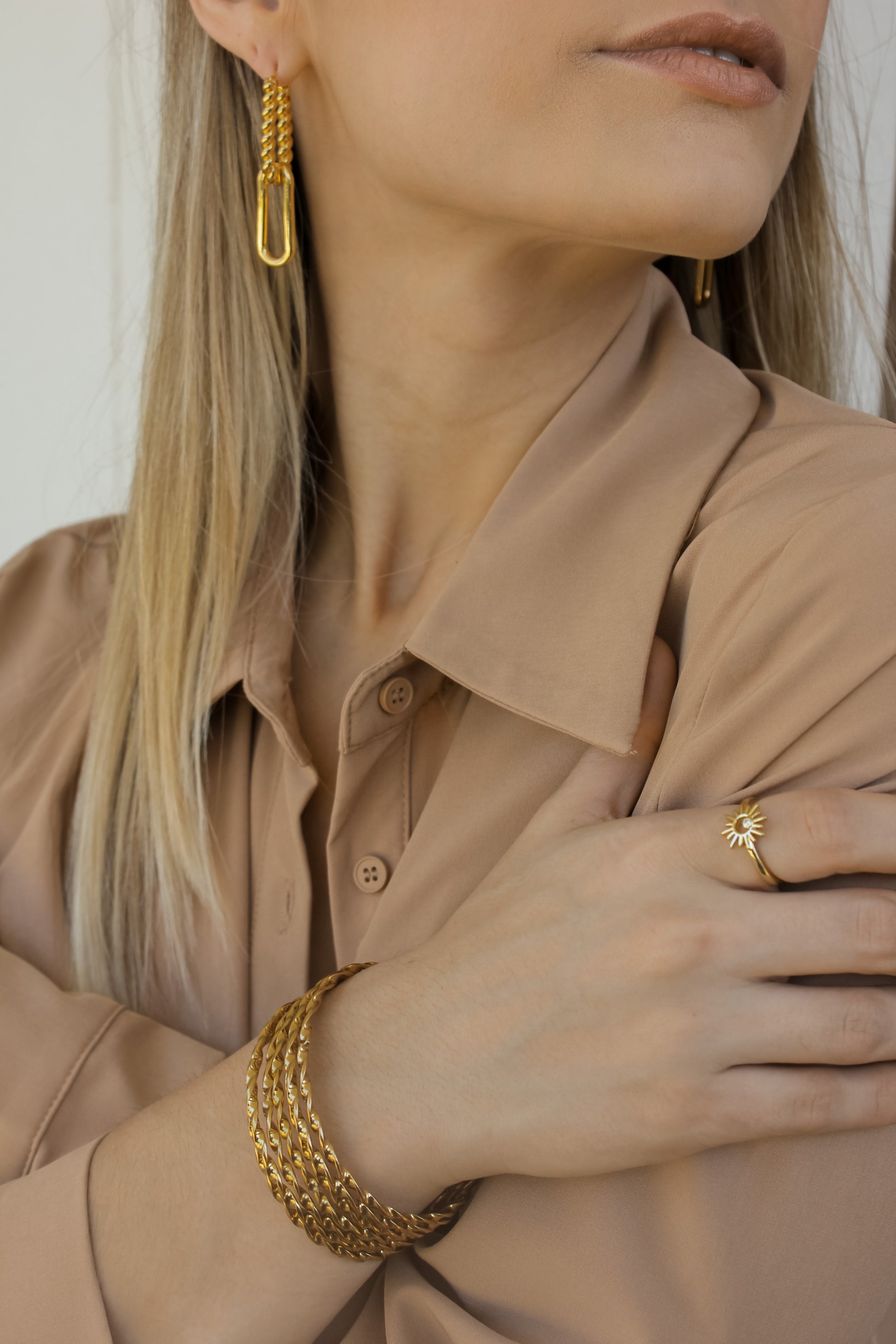 Tes bracelet includes 7 stainless steel twisted bangles. The perfect bracelet set for daily use, classic and a must have on your jewelry collection.